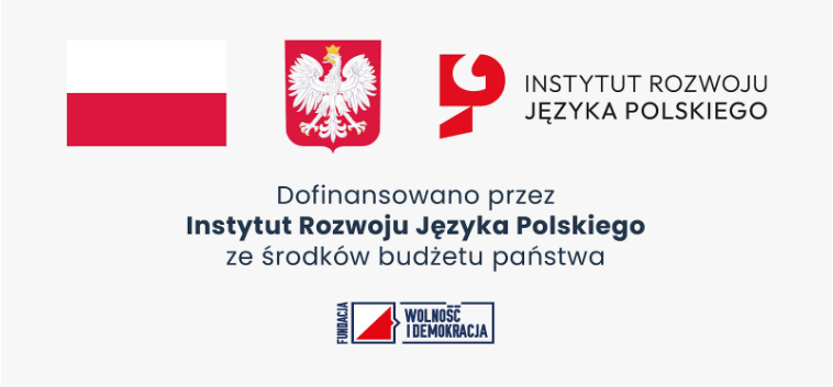 Dofinansowano przez Instytut Rozwoju Języka Polskiego ze środków budżetu państwa w ramach dotacji celowej na podstawie umowy o dofinansowanie z dnia 16.10.2025 w ramach wykonywania zadania Minigranty – koncepcja wspierająca strategiczne kierunki działalności Instytutu Rozwoju Języka Polskiego na lata 2025-2030. Wartość dofinansowania 12 000 zł.